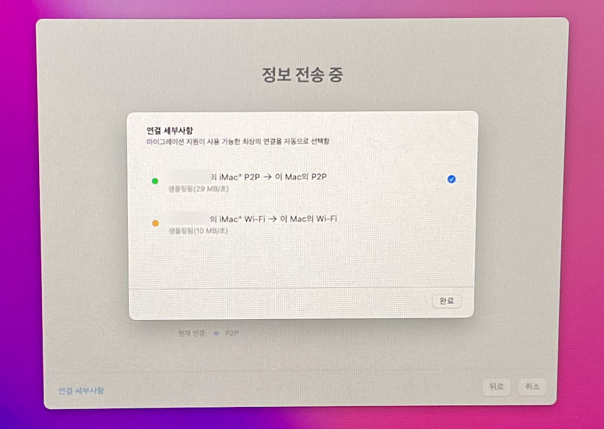 - 전송하려는 정보 선택시 동일 아이디이면 데이타 overwrite여부를 선택하게 된다. 저는 그냥 overwrite하고 현재 맥미니 부팅시의 데이타도 백업없이 지웠어요..
